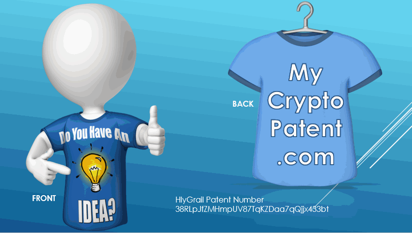 In this example, the Intellectual Property File IS the picture. Notice the HlyGrail Patent Number, or the bitcoin address is included in the image, proving the picture was available prior to patenting and now has a blockchain date of ownership.